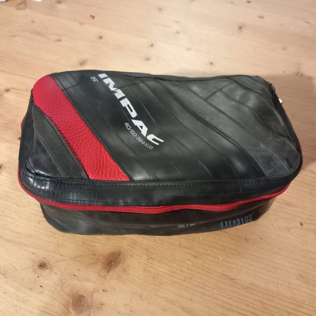 Sturdy travel case for small items, innertube rubber, lined, zipper