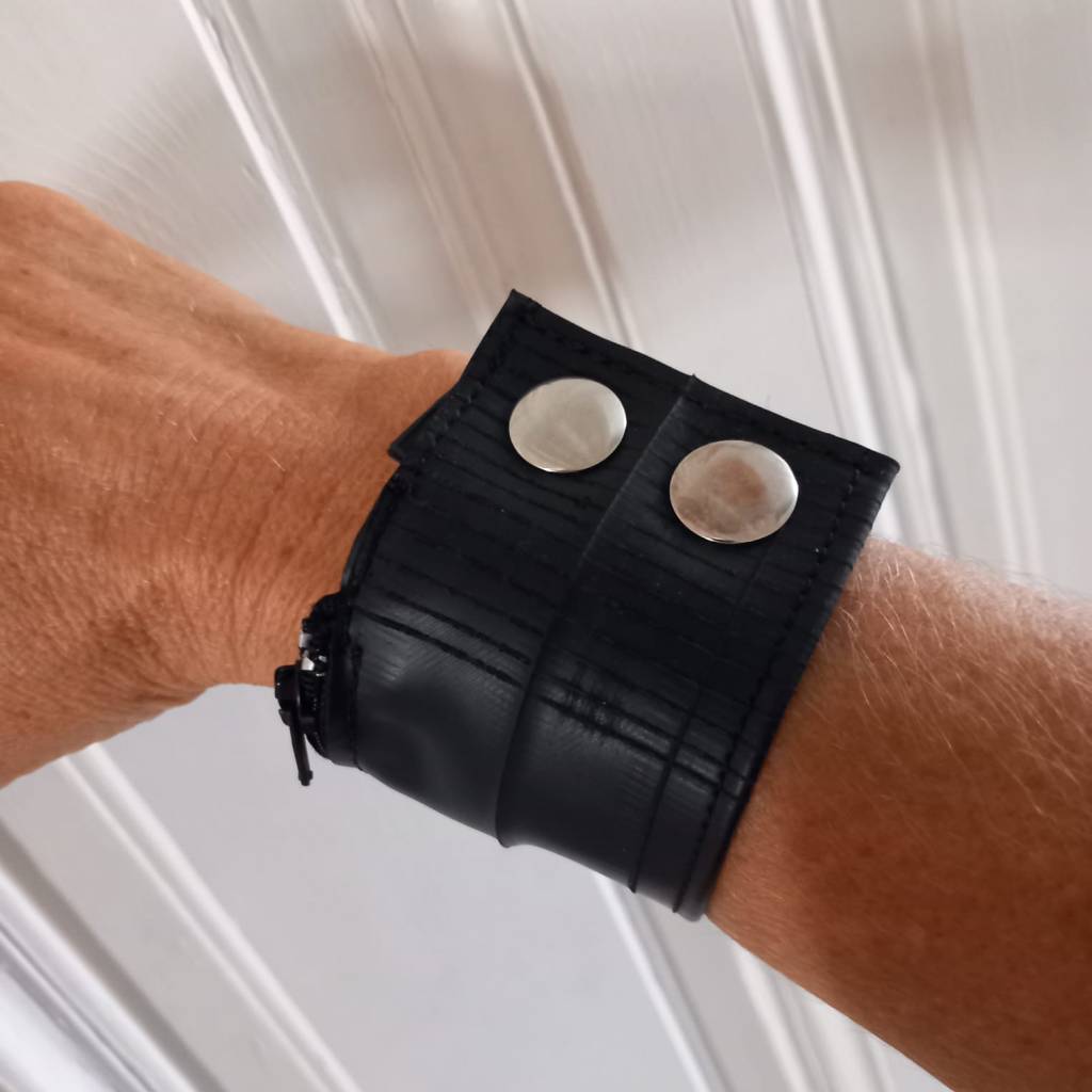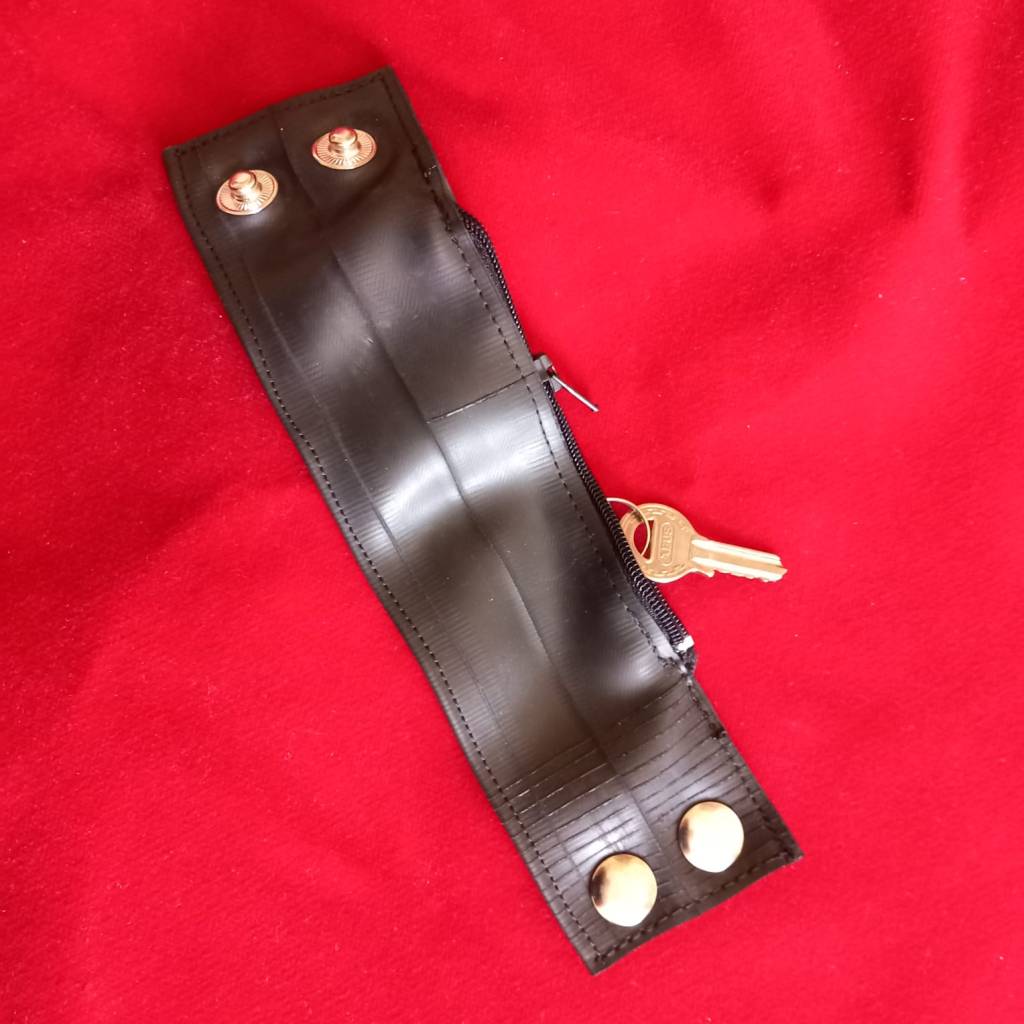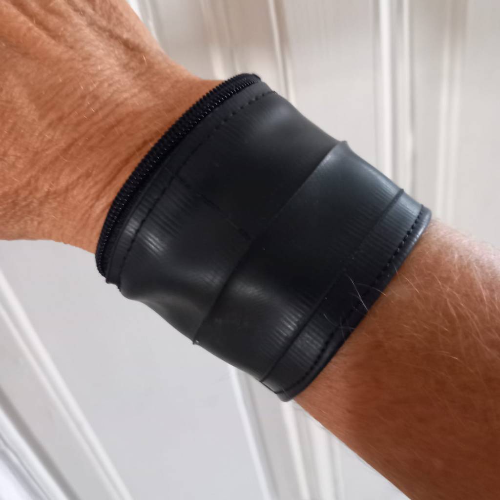 Rubber bracelet with a secret: Zippered compartment for keys and money.