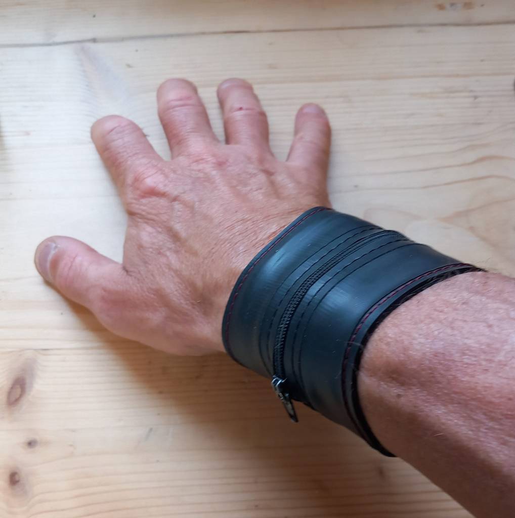 another schlüsselkind – rubber bracelet with zipper in the middle for keys and money.