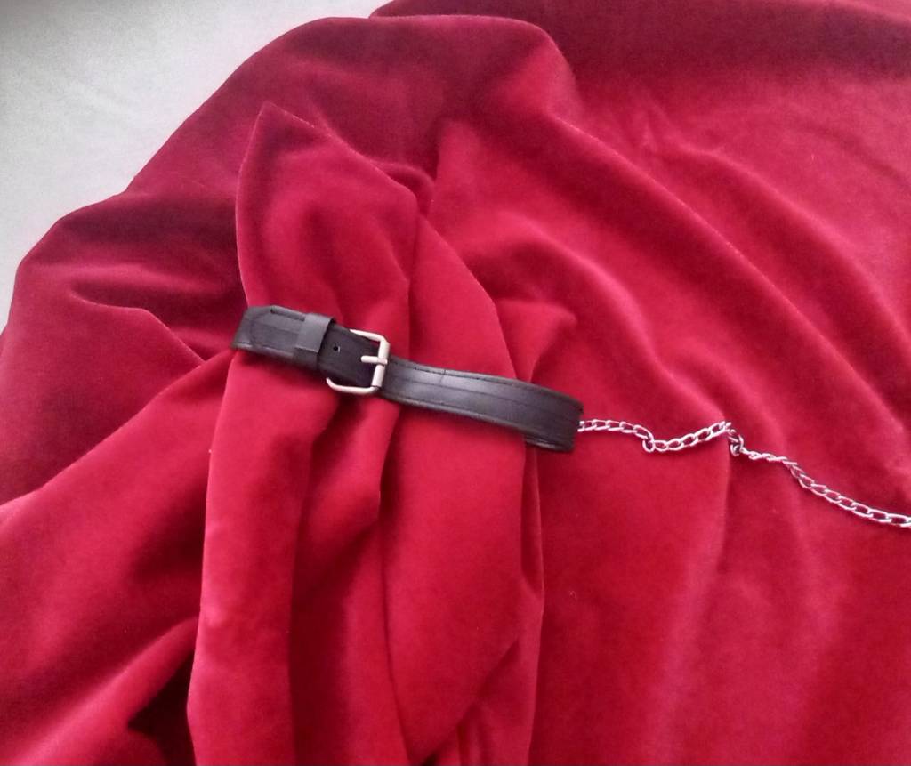 “jan is waiting….” men’s collar. Bicycle rubber, chain, steel rings.